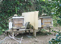 2006年12月14日、日本在来種みつばちの会会長で、養蜂家の藤原誠太さんが御所浦に来島されました。 「養蜂ワークショップ」は12月14日・15日の2日間をかけて行なわれました。 |