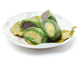 島のよもぎがたっぷり! 島で親しまれている、ふつ(よもぎ)のお団子。島で摘んだよもぎを使いますが、その量がとても多く、あんを包む餅が濃緑に。当然使ったよもぎの量に比例して香しい。黒あんと白あんの2種類があります。 ○お召し上がり方 生産者/おちゃめ会 |