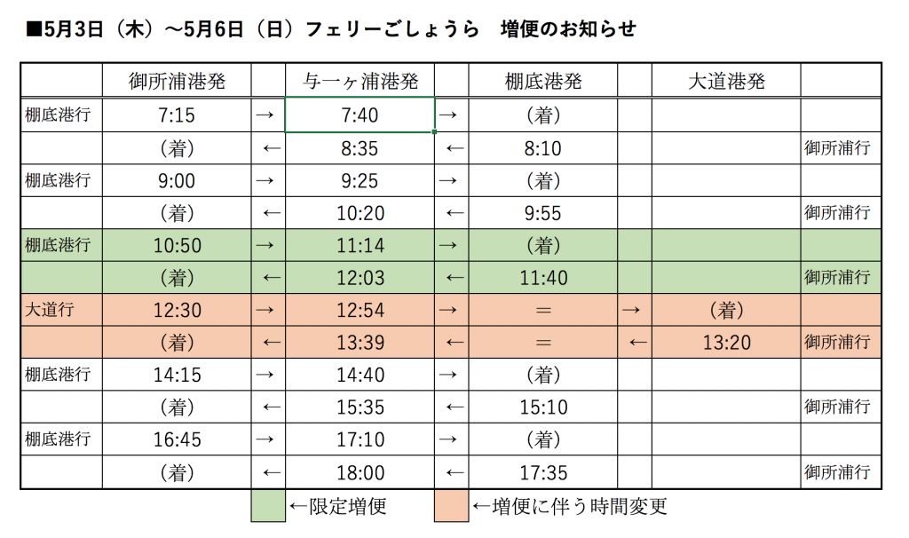 2018年05月02日GWはもっと御所浦が近くに!!カーフェリー限定増便!!