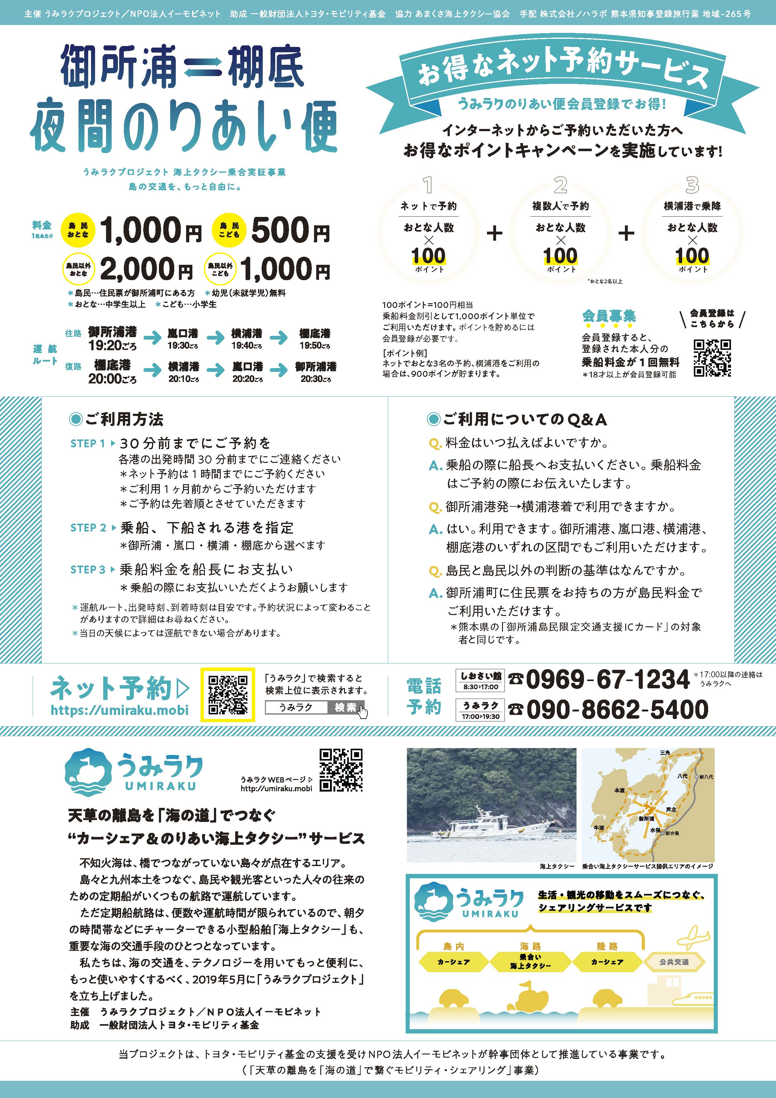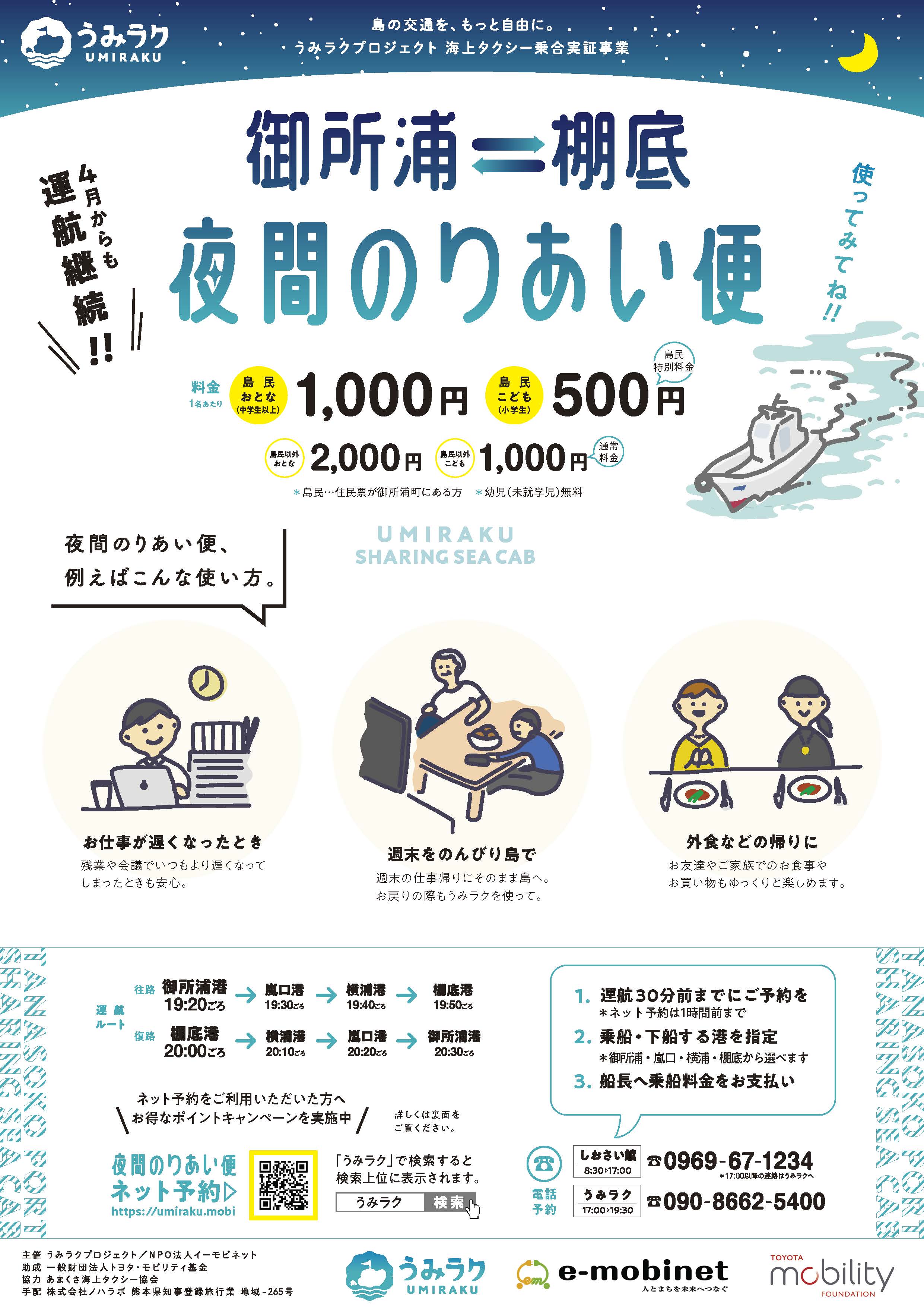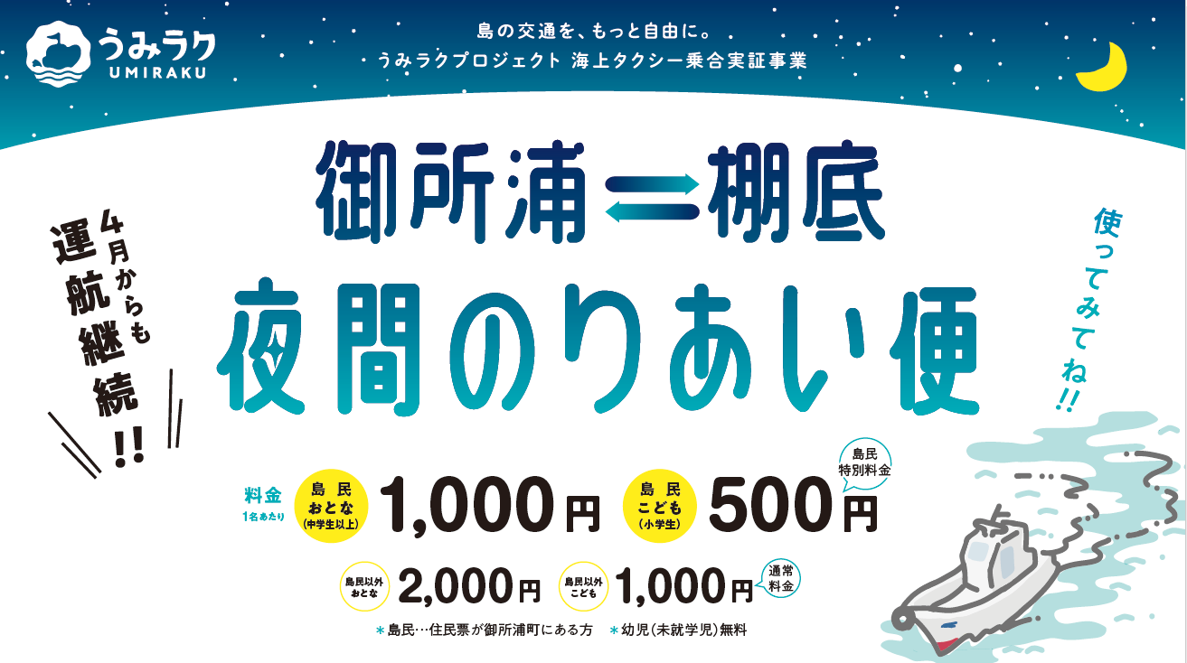 |ご好評につき運航継続! 御所浦⇄棚底 夜間のりあい便|