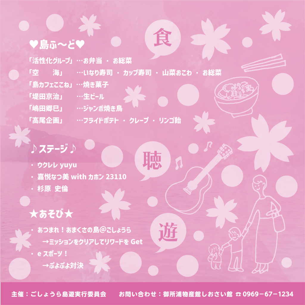 場所:御所浦全域(御所浦支所駐車場横広場で出店やステージイベントを行う予定です。)
