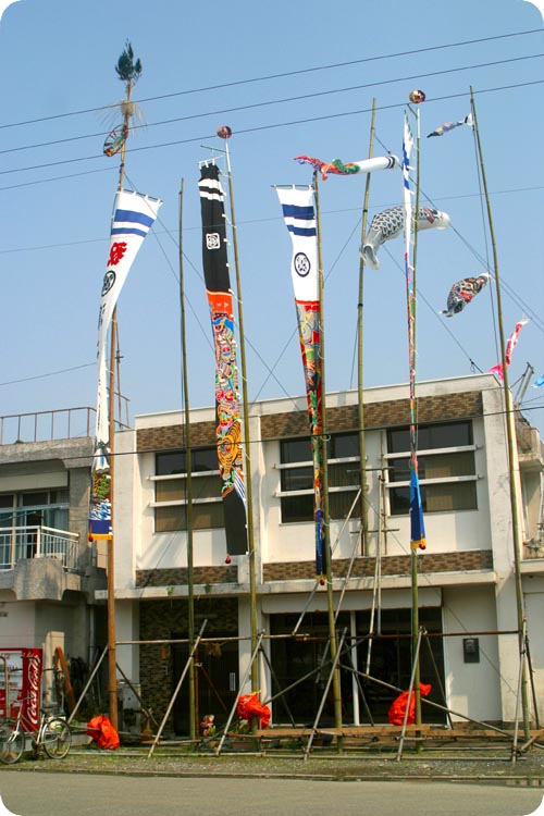 その家の長男が5歳になったときに親戚や、ご近所から幟や鯉のぼりが贈られます。