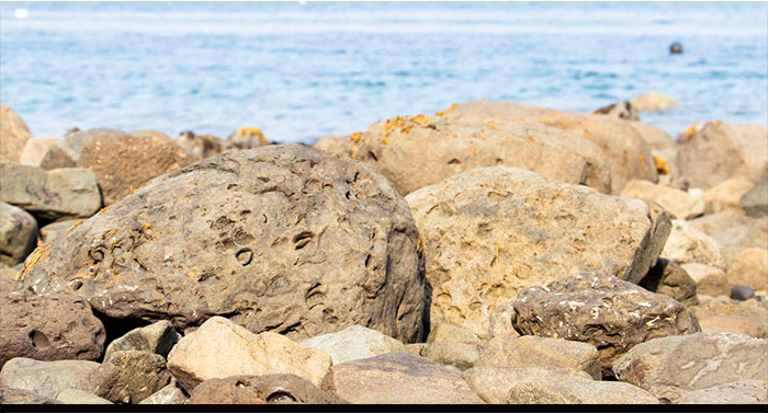 現地に降り立てば、今でも海岸の岩に骨や生痕化石、植物化石などを見ることができます。 -